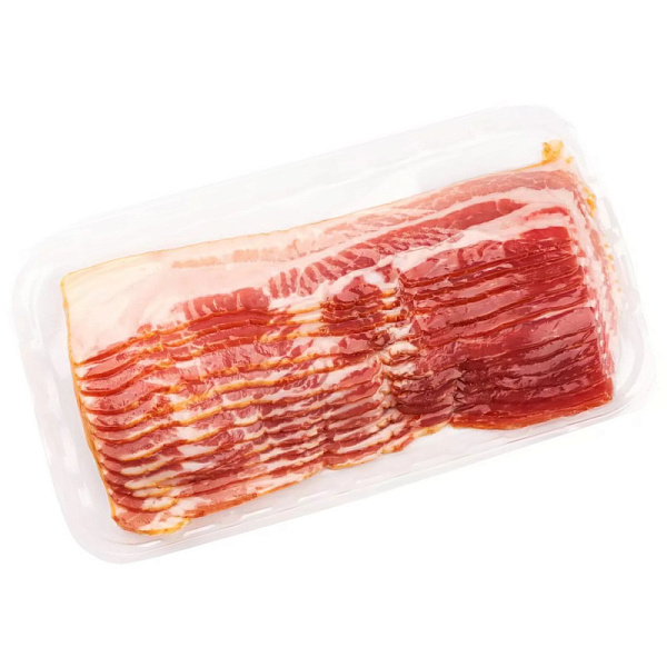 Бекон сырокопченый – прекрасная основа для многих блюд и создания вкуснейших закусок. Необычайно нежный, с приятным пряным вкусом и ароматом, он изготовлен из отборного свиного мяса.