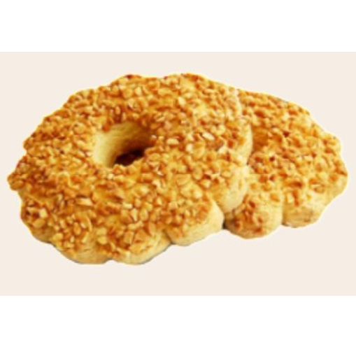 Сдобное песочное хлебобулочное изделие круглой формы, сверху украшено дробленым жареным арахисом. Замечательный десерт к чаю, кофе или тёплому молоку, а большая упаковка создана специально, чтобы лакомства хватило на всех!