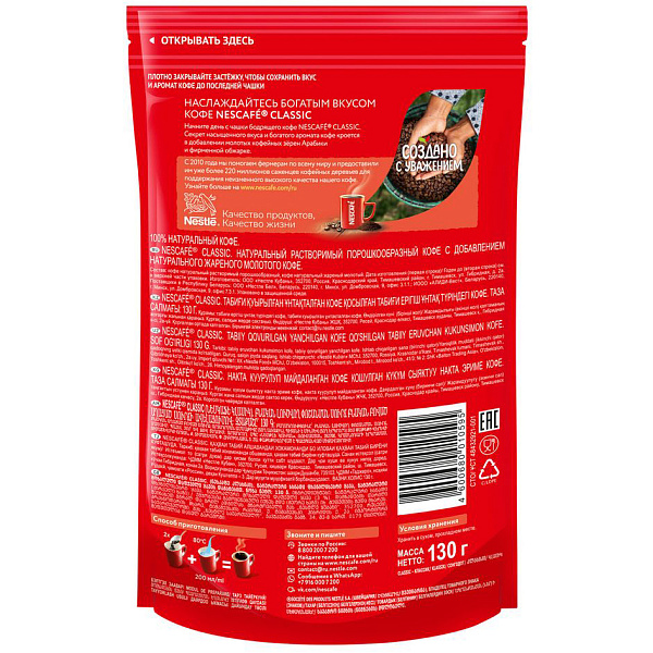Кофе натуральный растворимый Nescafe Classic, 130г