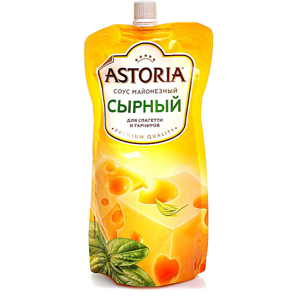 Неповторимая сырная нота этого соуса добавит частичку итальянских традиций любимым блюда из мяса, а также отлично подойдет к гарнирам: спагетти и хрустящему картофелю фри. «Сырный» соус «Астория» обладает нежным вкусом и изысканным ароматом голландского сыра.