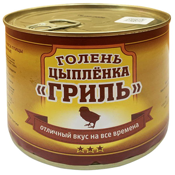 Голень цыплёнка "Гриль" — изысканный мясной деликатес для истинных гурманов. Натуральная консервация по особой технологии сохраняет все полезные свойства и неповторимый вкус свежего мяса. Идеальное решение для быстрого и питательного перекуса.