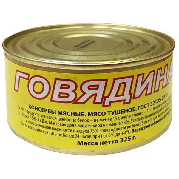 "Говядина тушёная" это консервированный продукт. Еще в глубокой древности люди задумывались о том, как уберечь продукты от порчи. Первые консервы появились во Франции в начале XIX века. В 1804 году французский кондитер Николя Франсуа Аппер предложил собственный способ консервирования. Он варил мясо или овощи 1-2 часа, а затем помещал готовую продукцию в сосуды, которые нагревал в соляном растворе до 110-115° С. В сосуде оставлялось небольшое отверстие, которое плотно закрывалось после того, как из него переставал идти пар. Англичане, купившие у Аппера право на консервирование продуктов по его методу, значительно усовершенствовали процесс. Мясо или овощи стали помещать в жестяные банки, герметически запаивавшиеся крышками. Основным заказчиком консервных заводов была армия. Проводились долгие опыты по определению самого вкусного для солдат и оптимального для казны вида консервов. Наиболее приемлемой для питания сочли тушеную говядину. Она при пастеризации почти не теряла вкуса и для солдат стала наиболее лакомой едой из жестянки. Так мясные армейские консервы превратились в «тушенку». Название это появилось в конце XIX века. В СССР тушенка, как и многое другое, была дефицитным продуктом, а в наше время она остается незаменимой в условиях, когда приготовление или долгое хранение свежего мяса невозможно. Особенно ценен этот продукт при длительных путешествиях, походах и выездах за город.