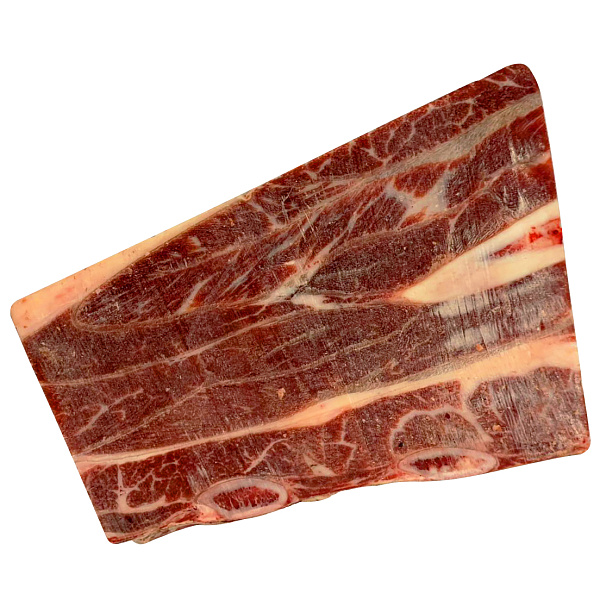 Говядина — это красное мясо с чуть сладковатым вкусом. Оно не такое жирное, как свинина, и более питательное, чем птица, а также один из основных источников животного белка. Говядина на кости — это спинной или лопаточно-шейный отруб туши животного и является продуктом категории «А». Ее употребление в пищу нормализует обменные процессы, поддерживает стабильный уровень кислотности желудка, а заморозка существенно продлевает срок хранения. Из говяжьего мяса готовят немало вкусных и полезных блюд: салаты, супы, котлеты, стейки, рагу, шашлыки, начинку для выпечки. Этот продукт редко вызывает аллергию и подходит для детского питания.