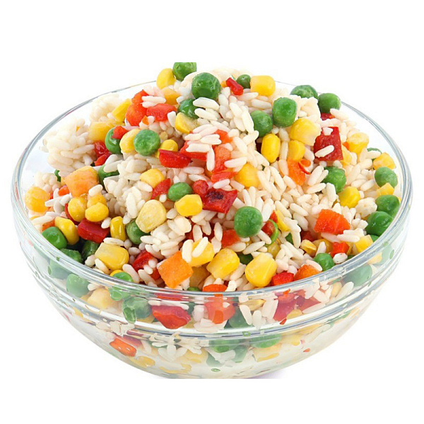 Состав Рис, зеленый горошек, кукуруза, перец, морковь, фасоль
